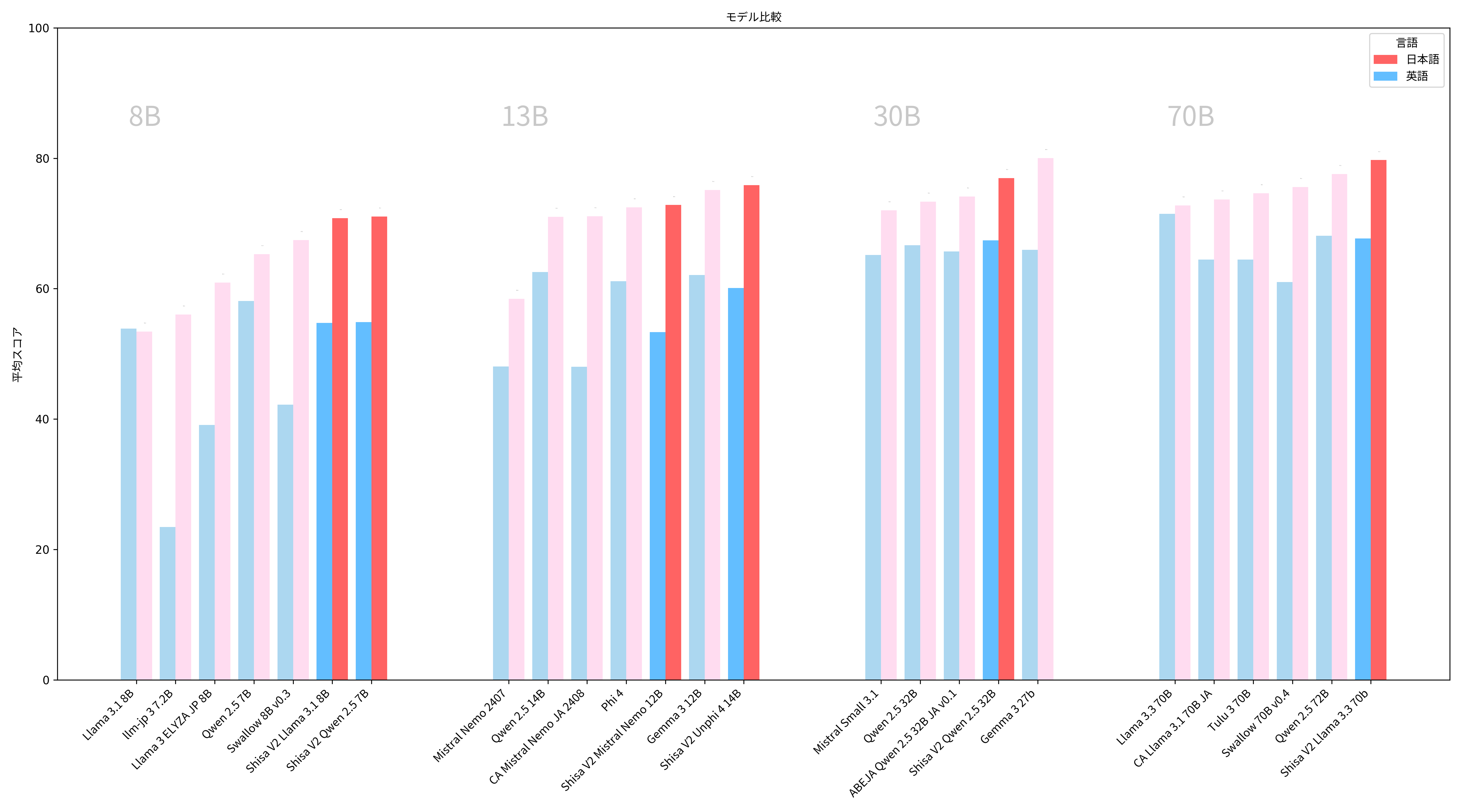 | Llama 3.3 | shisa-v2-llama3.3-70b | 70B | 79.72 | 67.71 |